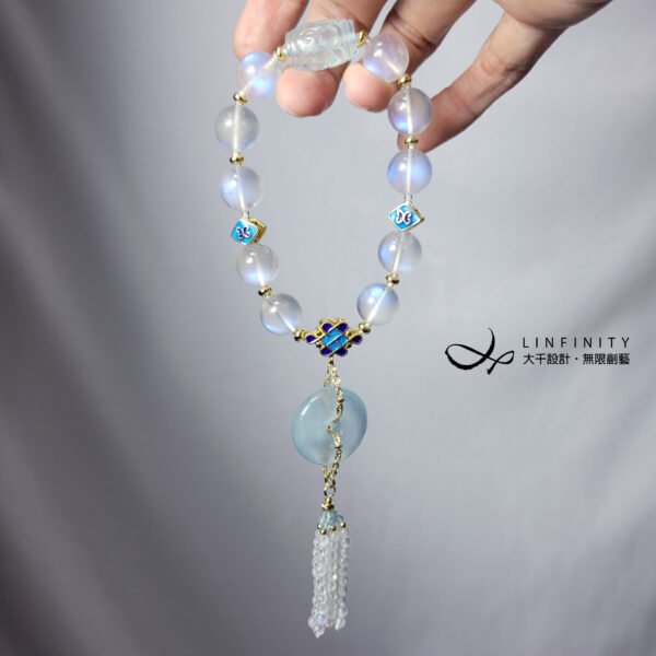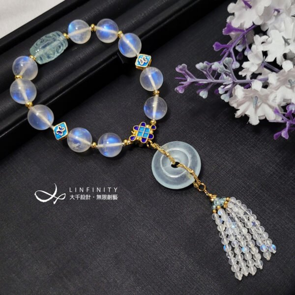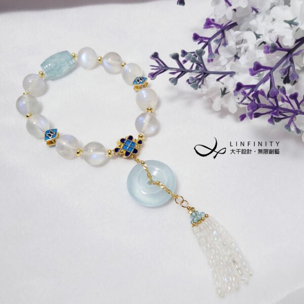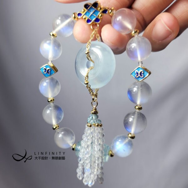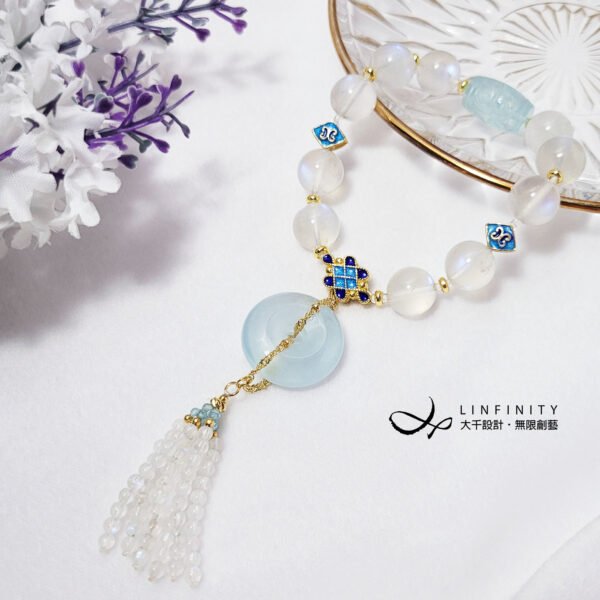 嚴選頂級藍月光石(靈性第三眼)、星光海藍寶(勇敢者之石)、富貴琺瑯飾,共同演繹藍色調寶石的風韻。