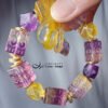 紫黃晶(Ametrine)晶體中同時帶有紫色與黃色兩種顏色,為自然界中紫水晶、黃水晶互相變化的過程偶然產生,以自然產生者佳。