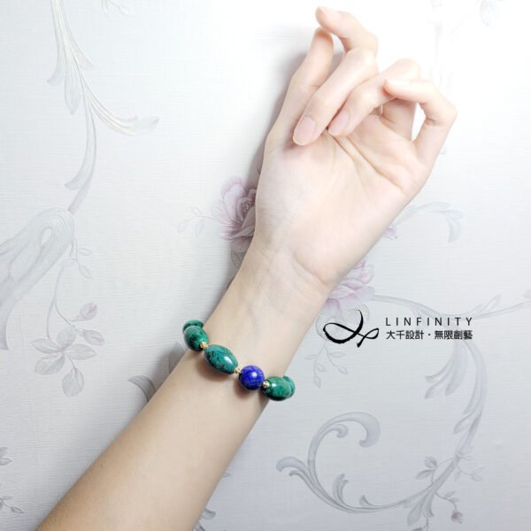 材質:天然藍銅礦、鳳凰石、矽孔雀石、青金石、18K金、925銀