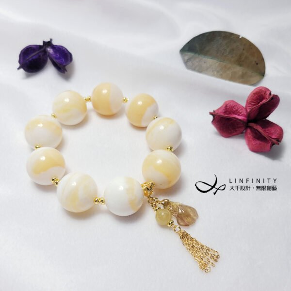 硨磲(Tridacna Stone)來自深海,為經歷千百年蘊育生長的有機寶石,蘊藏能量強大之磁場,可使配戴者增進身心的調和平衡、啟發自我的智慧。