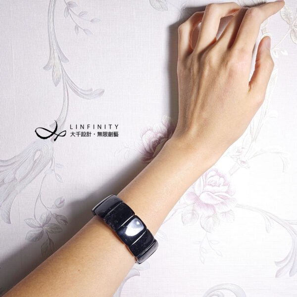 1.圖上黑髮晶排寬約25mm,整體手圍約18cm。