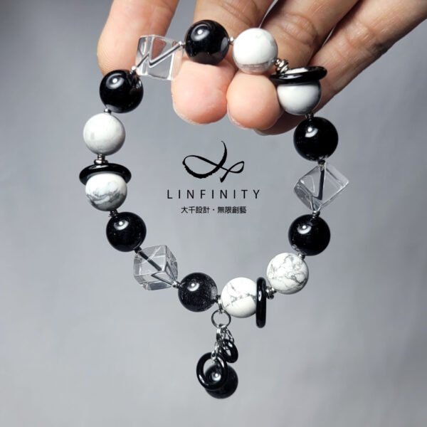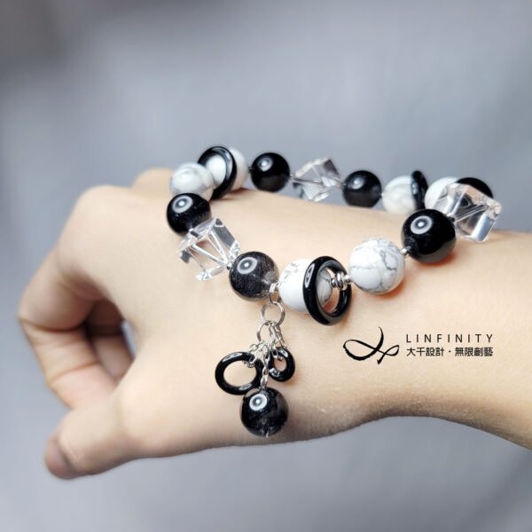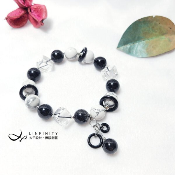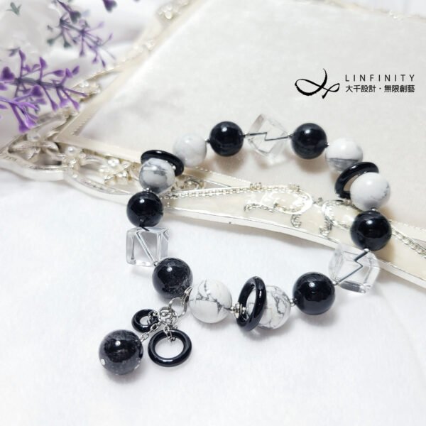 材質:天然黑髮晶、白水晶、白松石、黑瑪瑙、18K、925銀