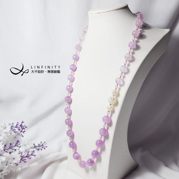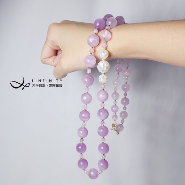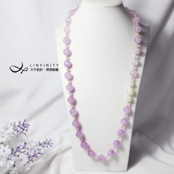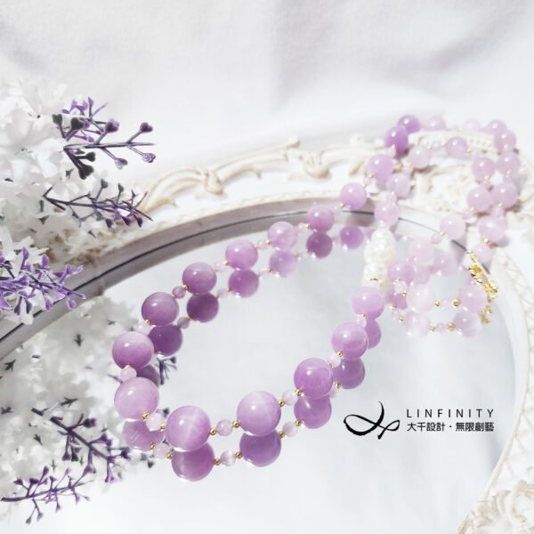 本件嚴選夜晚寶石皇后-紫鋰輝(孔賽石Kunzite)設計。
