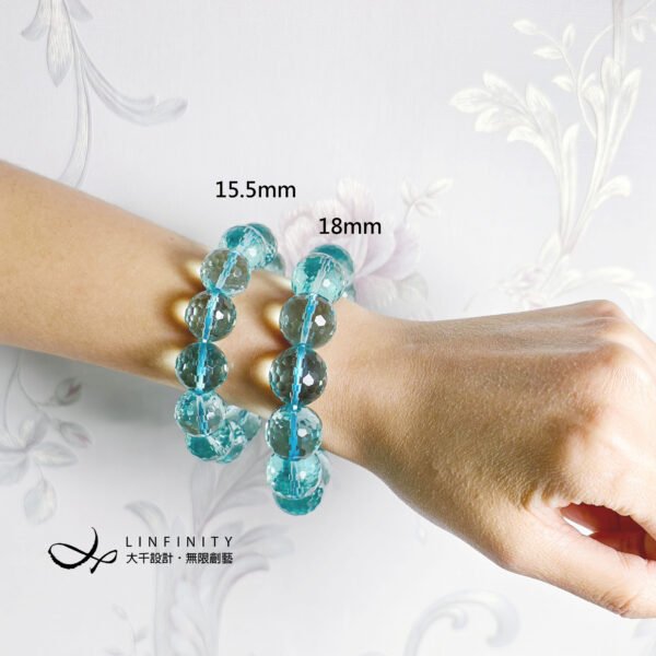 1.圖上藍曜石珠有2尺寸 – 15.5mm(手圍16.5cm)、18mm(手圍17cm)。
