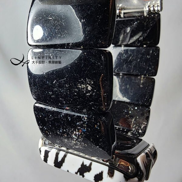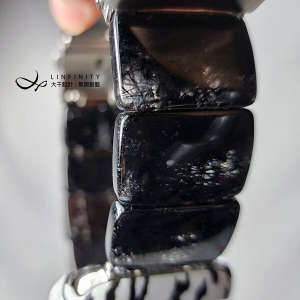 本件嚴選珍貴稀有頂級黑髮晶(領袖之石)設計錶帶。