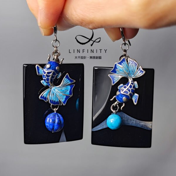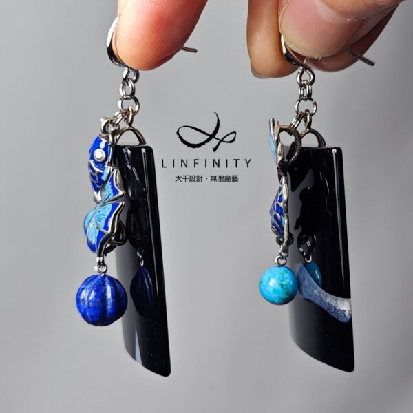 嚴選天然黑瑪瑙,佐青金石、鳳凰石、琺瑯設計。