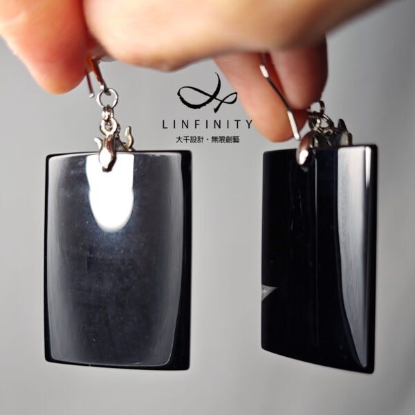 尺寸:圖中黑瑪瑙無飾牌高x寬x厚為40x30x5mm,總體含耳鈎高約6.3cm,因寶石重量重,不建議改夾式呦^^。