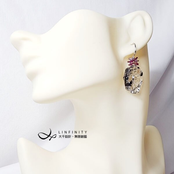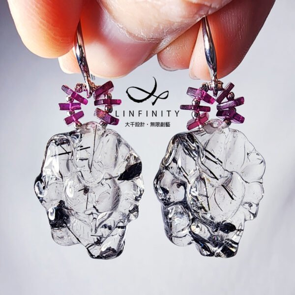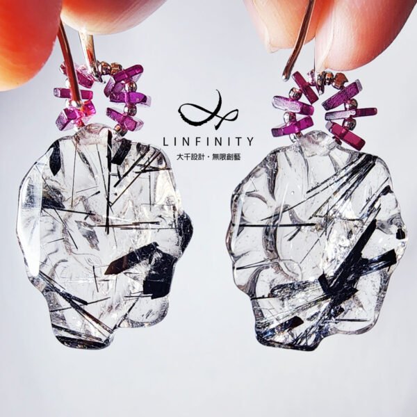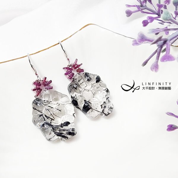 材質:天然黑髮晶、紅石榴(紫牙烏)、18K金、925銀